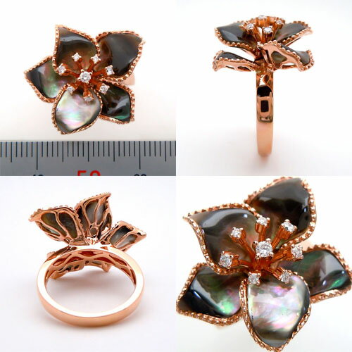 【クーポン10%OFF】[スピード配]ピンクゴールド (K18PG) ダイヤモンド/黒蝶貝 リング(D Total 0.11ct/フラワー/花/大ぶり/中指)【新作】【ハイクラス】【宝石 ジュエリー】【プレゼント】【刻印無料】【クリスマス】20P05Aug17