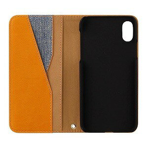 【商品解説】〔iPhone X用:ケース スタンド機能 ポケット・ストラップホール付〕使うほどに味が出るデニム調×PUレザーデザイン!ビジネスシーンでも日常生活でも使い勝手の良い機能満載の手帳型ケース。