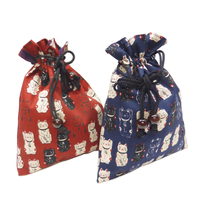 縁起が良くてとっても可愛い招き猫グッズ♪安心、安全、高品質の日本製!手づくり・幸せこいこい、福あつめ招き猫デザイン巾着袋【10P03Dec16】